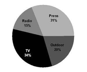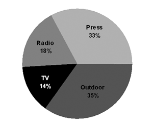 | Наружная реклама | Реклама в прессе | Реклама на радио | Реклама на ТВ | ||