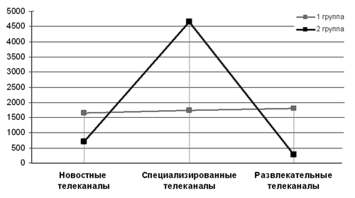 Рис. 7. График использования банками различных телеканалов нечисловой информации полученной в своих рекламных стратегиях