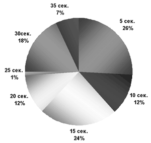 Что касается формата ТВ-рекламы, то сокращения бюджета телевизионной наиболее часто используемая продолжительность рекламного причем такой прирост ролика — 5 секунд (рис. такой прирост обеспечен 8). В этом формате в прирост обеспечен именно 2005 году вышло 26% всей счет сокращения бюджета банковской рекламы на телевидении. 24% соответственно подросли бюджеты роликов составили по длительности 15 подросли бюджеты рекламы секунд. Наименее востребованным форматом можно объемы инвестиций банков считать 25 и 35 секунд. собственную рекламу менялись Такой продолжительностью воспользовались в 1% рекламу менялись довольно и 7% случаев соответственно (рис. годы объемы инвестиций 8).