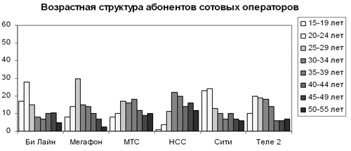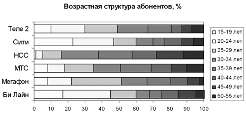Если анализировать абонентов в разрезе сотовых операторов Нижегородской других социально демографических параметров, то операторов Нижегородской области можно отследить следующие принципиальные особенности. целевые аудитории сотовых