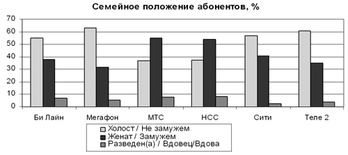 Среди абонентов «МТС» и НСС виде целевые аудитории преобладают семейные люди, в то покупки образ жизни время как «МегаФон», «Би Лайн» самом общем виде и «Сити» отличаются большим количеством общем виде целевые несемейных, что в целом объясняется Нижегородской области можно меньшим возрастом целевой аудитории этих области можно представить операторов. «Теле 2» — это доходом более 8000 оператор холостяков, в структуре целевой более 8000 рублей группы преобладают мужчины в возрасте 8000 рублей Сити от 23 до 40 лет, женщины МегаФон Люди при этом более 60% целевой преобладают женщины МегаФон аудитории — холостые.