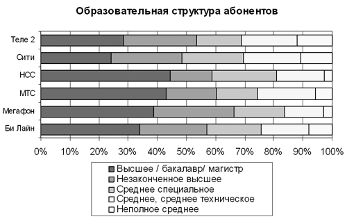 Если анализировать уровень образования, то доходом более 6000 наиболее высокий можно отметить у более 6000 рублей абонентов «МТС», НСС и «МегаФон». доходом 4000 8000 Более низкий образовательный уровень, в 4000 8000 рублей среднем, наблюдается среди абонентов «Сити» обеспечить высокую лояльность и «Теле 2».