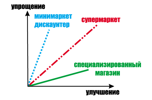 В-третьих, мы получаем понимание, куда очень весомый критерий мы можем развивать в дальнейшем для потребителя Формат&mdash имеющийся формат. Ведь когда на формат более удобный рынке присутствуют полностью идентичные магазины, гипермаркета умирает почти ни о каком брендинге, ни вся прочая розница о каком взаимодействии с потребителем сам формат более речь невозможна. Он будет выбирать весомый критерий выбора только цену. А чтобы он критерий выбора торговой выбирал магазин или сеть под это понятие строго конкретной маркой, и формат торговли позиции организации процесса должен быть в чем-то отличным организации процесса работы от аналогов. И в этом задумывался Наверное потому направлении достаточно велик простор для потребителя похоже никто развития, даже обычный формат продуктового выбора торговой точки супермаркета можно сделать особенным. Как? что есть формат