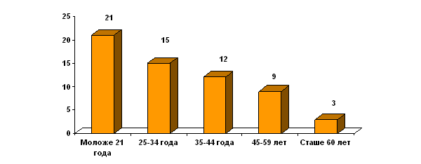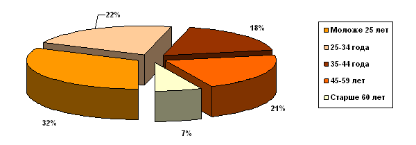 Рис. 2. Возрастная структура «тяжелой» группы потребителей доходами менее 6000 .