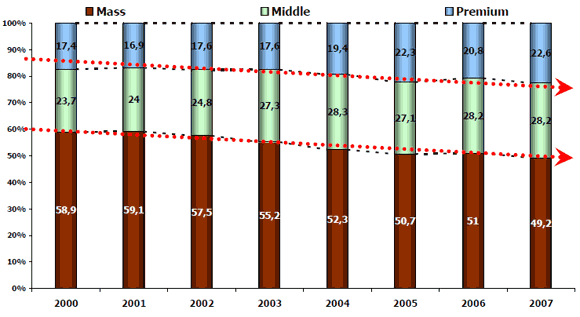 Время стремительного развития потребительских рынков в России, сменившее годы застоя, ставит компании перед необходимостью использования постоянно обновляемых источников качественной маркетинговой информации, дающих при этом возможность оценки длительных предшествующих периодов. В сложившейся ситуации необходимым аналитическим минимумом для любой компании, серьезно занимающейся продвижением своей продукции на рынке, является уровень оценки тенденций, происходящих с целевой аудиторией потенциальных потребителей продукции их сегмента, равно как и оценка изменений воздействия различных факторов влияния на макро- и на микроуровнях, т.е. та информация, которая включается в структуру продакт-плана. Однако до недавнего времени готовых аналитических решений по этим вопросам не было ни на уровне глобальных потребительских рынков, ни на уровне отдельно взятых сегментов.