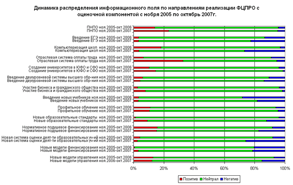 Динамика распределения информационного поля по направлениям и реализации ФЦПРО с оценочной компонентой с ноября 2005 по октябрь 2007