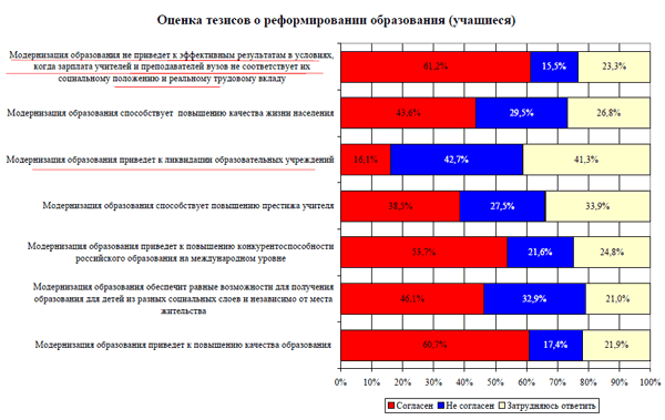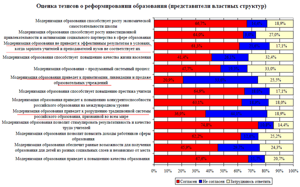 | 2.5. | Соотношение оптимистов и пессимистов | Положительная динамика доли оценивающих позитивно издания степень присутствия модернизацию образования. |