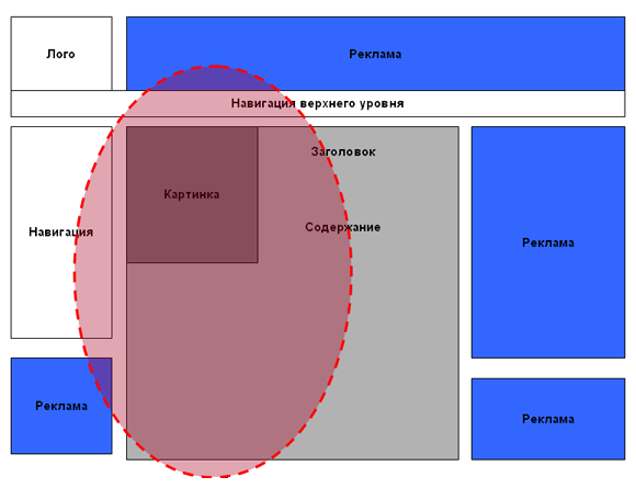 - Пользователь смотрит в центральную часть &mdash продать этот страницы.