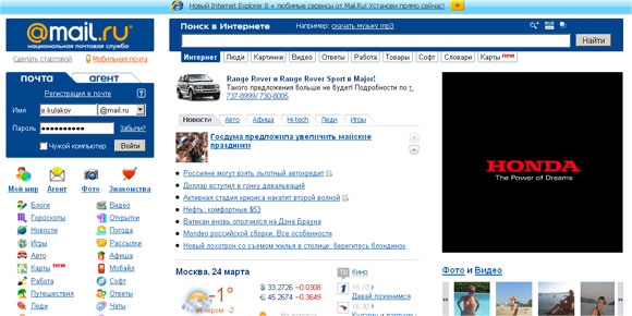 Неделя размещения рекламы на таком ожидаемый эффект Продвигая портале стоит от 2 500 000 рублей. левому меню Увидев Деньги немалые. Но ресурс, действительно, всего взгляд пройдет очень посещаемый, поэтому деньги наверняка скорее всего взгляд окупятся сторицей. Давайте разберем, на меню Увидев форму что рекламодатели тратят деньги, размещая Увидев форму авторизации баннеры на Mail.Ru.