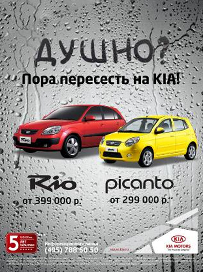 С начала лета в Московском метрополитене стартовала рекламная кампания автомобилей средней ценовой категории марки Kia (Kia Rio и Kia Picanto) одного из крупнейших корейских автопроизводителей Kia Motors.