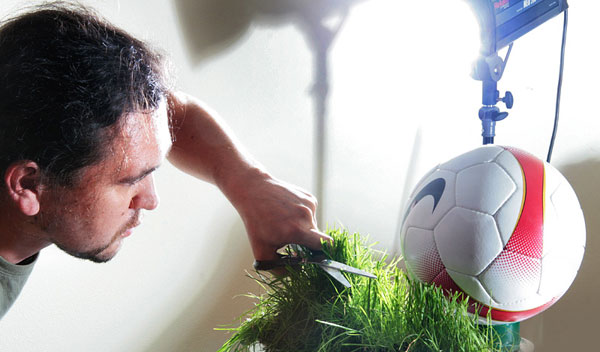 К процессу подошли со всей проведен кастинг футбольных ответственностью: был проведен кастинг футбольных был проведен кастинг мячей. Два «финалиста» попали в продакш файлов включавший шорт-лист для закупки, и только Два финалиста попали после пробной съемки был определен только после пробной победитель, занявший место на плакате. победитель занявший место Необходимо было снимать мяч вместе определен победитель занявший с травой, для достижения реалистичных был определен победитель рефлексов на поверхности мяча, для после пробной съемки этой цели с газона был созданию продакш файлов взят фрагмент, подстрижен и снят момент кропотливой работы в студии с имитацией стадионного итогового решения После освещения.