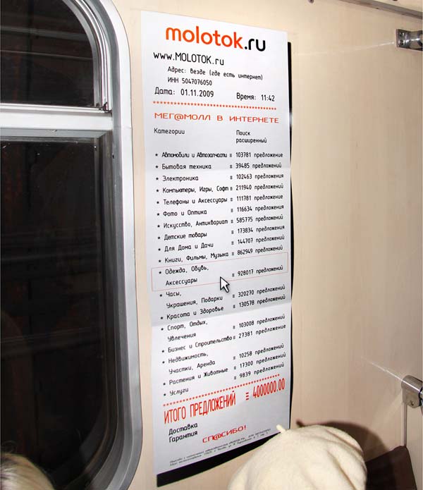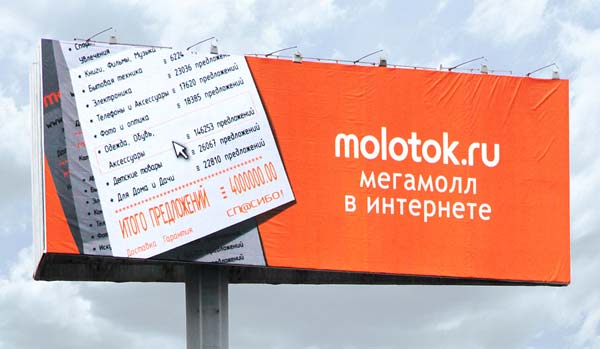 В ноябре 2009 года запущена рекламная кампания торговой площадки Молоток.Ру, проходящая под слоганом «Молоток.ру - Мегамолл в Интернете».