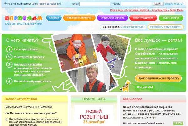 Компания Tiburon объявляет о старте нового исследовательского проекта «Опрос мам» (www.OprosMam.ru), ориентированного на достижение такой сложной целевой аудитории маркетинговых исследований как мамы с маленькими детьми.