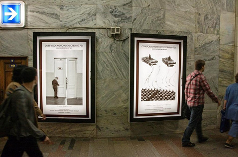 Компания «Олимп», завершив размещение в Московском метрополитене всех постеров совместного с Центром фотографии имени братьев Люмьер проекта «Советское фотоискусство 60-70-х», в связи с огромным интересом к фотовыставке дополняет ряд уже задействованных рекламных носителей еще одним - высокотехнологичными цифровыми видеоэкранами, установленными на колоннах экстренного вызова в центре платформ.