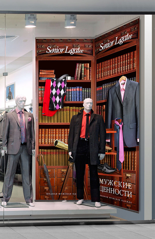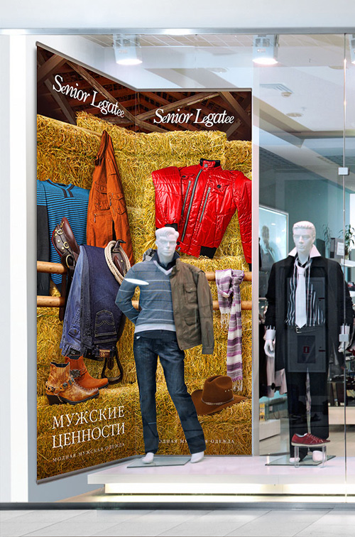 Рекламное Агентство «Икраткое» завершило работу над имиджевыми интерьерными баннерами для оформления витрин магазинов модной мужской одежды «Senior Legatee».