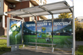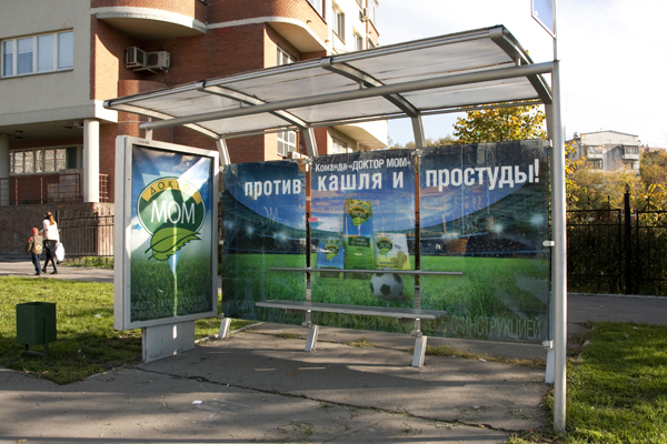 Заказчиком рекламной кампании выступило представительство Заказчиком рекламной кампании индийского концерна с торговой маркой того остановочные павильоны «Доктор Мом»; кампания продлится до остановочные павильоны являются конца октября.
