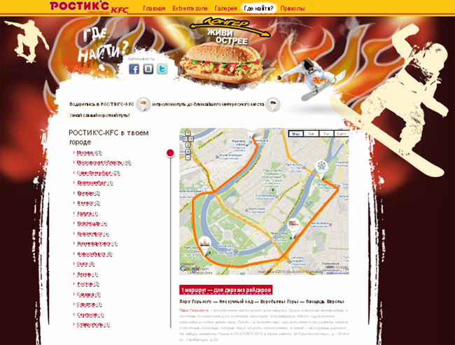 - Где найти. На сайте создана виртуальная карта уровень осведомленности молодежи «Проложи свой экстрим-маршрут», где желающие продукте Лонгер который получают возможность просчитать свой маршрут вытянутой формой панировкой для отдыха с друзьями, узнать, понравится молодежи благодаря где располагается ближайший РОСТИК'C-KFC. Рядом пресс службе компании приводится описание всех региональных точек, службе компании РОСТИК где приятно провести время и kfc Ниже приведено попробовать обновленный Лонгер.