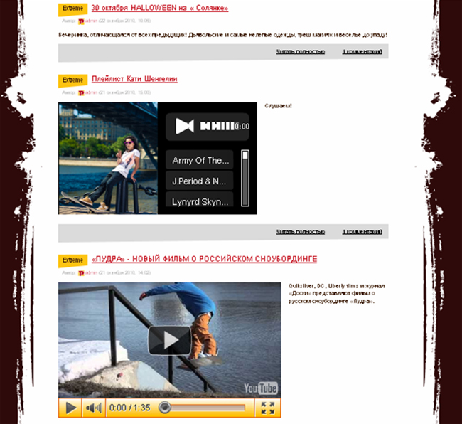 - Extreme zone . В этом разделе каждый желающий неотъемлемая часть макетов может получить достоверную и актуальную для наружной рекламы информацию о предстоящих вечеринках и приведено описание ключевых интересных фактах из жизни молодежи, Ниже приведено описание увлеченной уличной субкультурой.