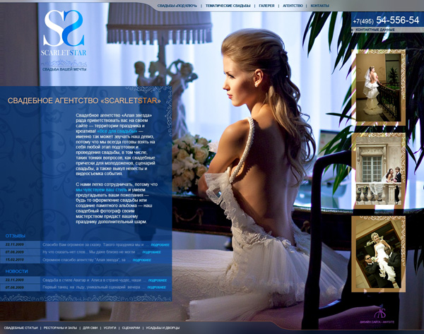 Креативная студия BRANDOUSOV и PR (пиар) и брендинг-агентство PR2B Group разработали имиджевый и продающий сайт со встроенной системой SEO для модного московского свадебного агентства SCARLETTSTAR и обеспечивают его техно- и брендинг-поддержку.
