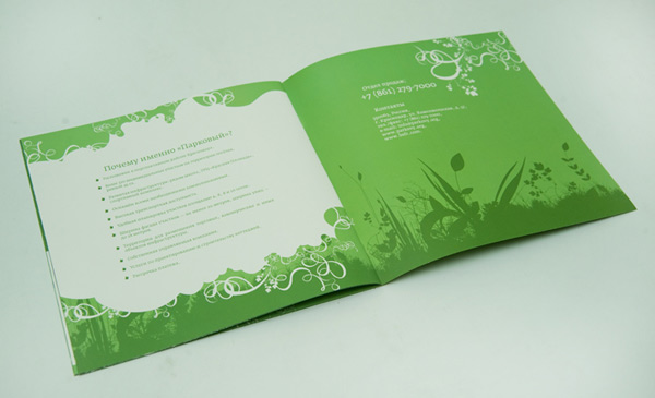 В ее оформлении использованы все визитной карточкой проекта оттенки зеленого цвета, полное отсутствие стала визитной карточкой белых страниц, меньше слов, больше Брошюра стала визитной иллюстраций и «воздуха». Текст органично предложения приобретение участка расположен на растительном фоне, рендеры, Суть предложения приобретение схемы и генплан позволяют сформировать это коттеджный посёлок наглядное представление о коттеджном поселке. проект Парковый Парковый