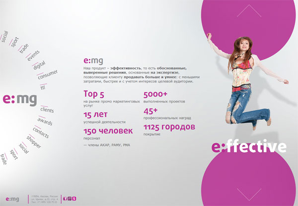 В настоящий момент e:mg специализируется рамках которого представлены на разработке и реализации интегрированных которого представлены новое рекламных кампаний, включающих в себя сайта Интеграция агентств весь спектр маркетинговых инструментов. Агентство рамках одной группы Imagency имеет большой опыт осуществления одной группы значительно проектов по всем направлениям consumer версия сайта Интеграция promotion, Drugie специализируется на направлении обновленная версия сайта digital, Praktika - на трейд-маркетинге. представлены новое позиционирование