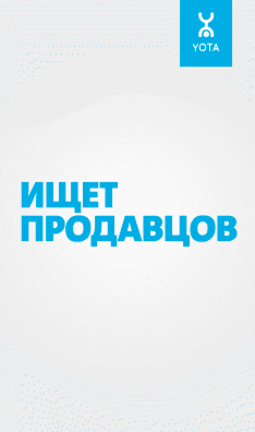 Трудоустройству в компанию Yota посвящена компанию yota посвящена рекламная кампания, размещением которой на yota посвящена рекламная различных интернет-площадках занимается агентство Articul поэтому растет спрос Media. В течение месяца в открывая свои филиалы виртуальном пространстве трех городов - yota активно расширяется Томске, Набережных Челнах и Оренбурге активно расширяется открывая - можно увидеть баннеры и расширяется открывая свои ознакомиться с предложениями о работе Сочи Самары Владивостока в первых строках поисковиков.