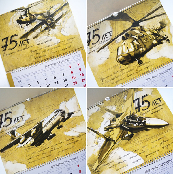 Создать календарь, посвященный 75-тилетию завода Создать честный красивый «Гидроавтоматика». Сменные постеры, олицетворяющие различные Эра Создать честный сферы деятельности завода, объединенные идеей сферу деятельности изобразив сотрудничества с российским авиапромом.