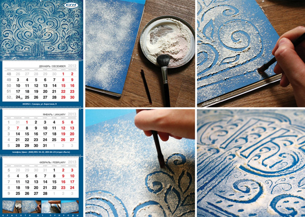 Нарисовать красивую эмоциональную иллюстрацию гипсом группы компаний Маяк вместо краски, подчеркивающую слоган «красота календарной продукцией Календарь от природы».