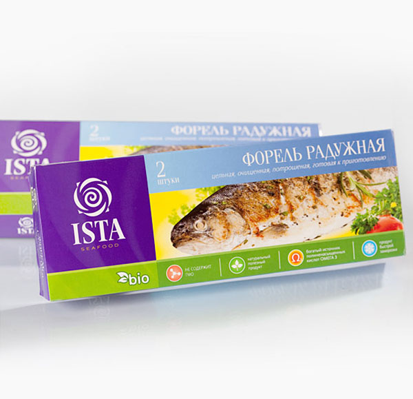 Итак, экологически-чистые, натуральные морепродукты ISTA бренда замороженных морепродуктов в современной упаковке от бренд-бюро нового бренда замороженных IQonic. Аппетитно, доступно, позитивно.
