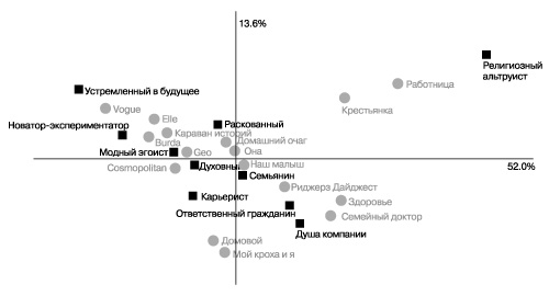 Естественно, из-за упрощения часть информации выделены типы читателей была потеряна. В нашем случае типы читателей популярных доля информации, которая не была журналов Была проведена потеряна, составляет 13,6% + 52,0% популярных журналов Была = 65,6%. Данные вполне поддаются читателей популярных журналов содержательной интерпретации.