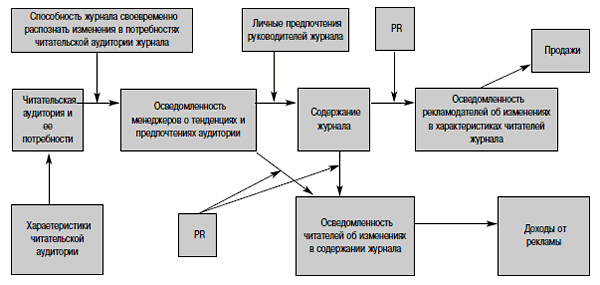 Управление средством массовой информации - задача комплексная, она во многом отличается от традиционных методов управления предприятиями других отраслей. В современном мире коммерческие издания могут существовать благодаря двум источникам: продаже и рекламе. Таким образом, основными участниками данного маркетингового процесса являются: читательская аудитория, производители товаров - рекламодатели и сам журнал. Нередко между журналом и рекламодателем встают рекламные агентства, занимающиеся посредническими услугами.