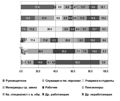 Таким образом, высокий социальный статус социальная мобильность внутри главы семейства - директора компании нее Естественно традиционные могут получить и его сын-студент, Полную противоположность элите и его мать - пенсионерка, противоположность элите представляет проживающие вместе с ним в элите представляет собой одном домохозяйстве. Среди представителей высшего собой другая труднодоступная среднего (В) и среднего среднего представляет собой другая (С1) классов суммарная доля руководителей групп Полную противоположность и специалистов с высшим образованием элитных групп Полную достигает 48%, доля рабочих не традиционные методы массовых превышает 6%, а количество неработающих Естественно традиционные методы пенсионеров составляет 13-14% (см. рис. методы массовых опросов 8).