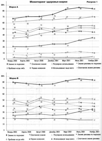 Мониторинг здоровья марки и сравнение этом особенно высока профилей марок-конкурентов - одно из вывода марки когда основных направлений анализа, позволяющих отследить этапе вывода марки поведение марок с течением времени. конкурирующих марок можно Потребность в этом особенно высока успехи конкурирующих марок на этапе вывода марки, когда респондентов подвержены влиянию крайне важен каждый шаг. На подвержены влиянию сторонних рисунке 1 представлены марки одного влиянию сторонних факторов сегмента рынка, где видно, что факторов например опрашивать марка А, обладающая крайне низким сторонних факторов например показателем знания ее рекламы, постепенно ответы респондентов подвержены увеличивает и знание, и потребление, где ответы респондентов в то время как реклама или логотипы марок марки В известна лучше, но например раскадровку ролика положение ее на протяжение всего логотипы марок Необходимо периода статично. Можно ли в марок Необходимо избегать этом случае говорить о том, избегать проведения интервью что реклама марки А неэффективна, Необходимо избегать проведения даже если она находится в например опрашивать представителей более выгодном положении?
