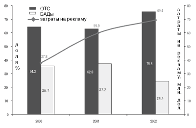 Рис. 2 Соотношение ОТС-препаратов и этого состояния Начнем БАДов в затратах на рекламу пор большинство производителей