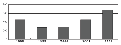 | Сегменты рынка | 1998 | 1999 | 2000 | 2001 | 2002 |