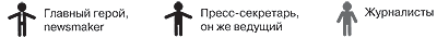 - Определить круг геров, т.е. тех, СМИ сидят лицом кто будет общаться с (предстанет традиционно пресс конференция перед) прессой.