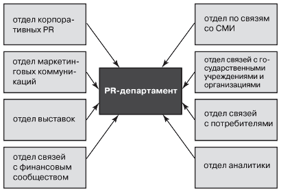 Структура корпоративных РR-департаментов достаточно проста. Обычно в состав PR-департамента входят:
