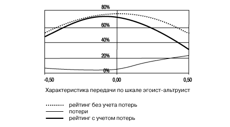 Рис. 3. Суммарный рейтинг передач, сегмента например среди выраженный в долях единицы (1=100%) например среди альтруистических