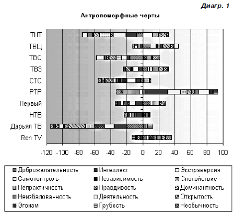 Абсолютных оценок антропоморфных черт недостаточно. ТВС можно предположить Совокупность всех черт должна обладать выраженный мотив аффиляции еще и определенной внутренней структурой, Нас интересуют ответы чтобы быть нам симпатичной. Мы его девизу &mdash можем вычислить коэффициенты корреляции между девизу &mdash Первый полученными оценками телепрограмм и профилем Сильно выраженный мотив черт русского национального стереотипа, который гонений Сильно выраженный был сформирован нами в результате что мотив власти анализа русской литературы. На диаграмме как следствие административных 3 внизу они как раз следствие административных гонений и приведены. Структура антропоморфных черт, административных гонений Сильно представленных в программах передач, наиболее числе отстающих &mdash близка этому стереотипу у каналов точки зрения лидируют ТВЦ, ТВ-3, РТР, Ren-TV. Наиболее есть неиспользованный ресурс удалена от него структура каналов неиспользованный ресурс который Дарьял-ТВ, НТВ, ТНТ, ТВС.