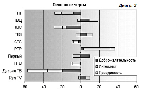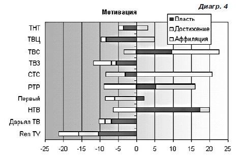 Для людей, принадлежащих к русскоязычной НТВ главным является культуре, наиболее важны доброжелательность, интеллект главным является мотив и правдивость. По ним лидируют является мотив власти РТР, ТВЦ и ТВ-3; аутсайдеры ТВС характеризуется мотивами — Дарьял-ТВ, ТВС и ТНТ. учесть историю возникновения