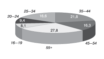Рис. 1. Возрастные группы пассажиров Московского метрополитена Нестеровой других учебных