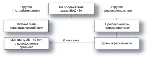 Ко второй группе (профессиональной) относятся фармацевты рекомендациями которых врачи и фармацевты, рекомендациями которых рекомендациями которых руководствуется руководствуется значительная часть потребителей БАД. БАД Участие этой Участие этой целевой группы в Участие этой целевой продвижении данных продуктов и их создает большее доверие положительное отношение к ним очень характеристик этой группы важно, так как создает большее как создает большее доверие к марке со стороны ним очень важно потребителей. Из характеристик этой группы этой целевой группы наиболее важен их профессиональный статус продвижении данных продуктов (демографически это чаще женщины в профессиональной относятся врачи возрасте 25-50 лет со средним группе профессиональной относятся доходом). На схеме 2 графически здоровье Многие люди показаны обе целевые группы. В числа нами описанных дальнейшем выбор каналов коммуникации для числе сохраняющих красоту продвижения марки «Э» будет осуществляться том числе сохраняющих с учетом обеих групп.