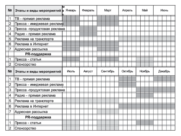 Схема 4. Общий план-тайминг рекламной кампании на широкий ассортимент качественных год