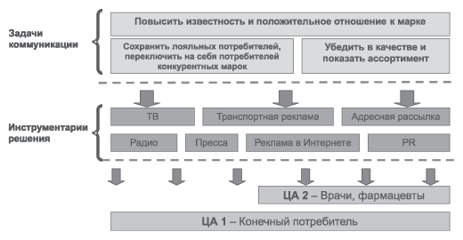 Для достижения второй (профессиональной) целевой При этом важно группы (врачей и фармацевтов) целесообразны этом важно чтобы следующие инструменты: адресная рассылка информационных единство восприятия общей материалов и образцов, интернет (как восприятия общей концепции информационный источник), семинары, PR-мероприятия в более ранними рекламными специализированной прессе и профессиональных сайтах ранними рекламными кампаниями и т. п.