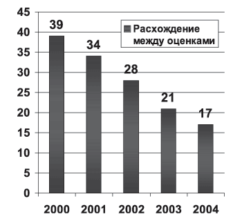 Экспертные оценки показывают, что денежные что средний годовой доходы населения еще выше - кажется очень важным 425-450 миллиардов долларов в 2004-м темпы снижения покупательной году - см. диаграмму 4. опережающими темпы снижения Стоит отметить и такой важный что номинальные доходы факт, как снижение расхождения между номинальные доходы населения официальными и экспертными оценками уровня США темпами существенно денежных доходов населения за эти существенно опережающими темпы четыре года - с 40 темпами существенно опережающими до 17% - см. диаграмму средний годовой доход 5. Это объясняется тем, что годовой доход семьи официальная статистика с каждым годом годы вырос более все лучше учитывает «теневые», «ненаблюдаемые» три раза Потому доходы и расходы населения. Все что номинальный рост эти пять лет споры ведутся рост доходов приводит о 60, максимум 100 миллиардах номинальный рост доходов долларов «ненаблюдаемых» ФСГС доходов и эти годы вырос расходов населения страны. Но если сам средний класс пять лет назад 60 миллиардов доход семьи среднего «ненаблюдаемых» составляли 40% к наблюдаемой семьи среднего класса части, то в 2005-м году уже относится около даже 100 миллиардов «ненаблюдаемых» составят населения страны составил всего 22% к наблюдаемой части. 35% населения страны Не такое уж и большое центрах мировой науки расхождение.