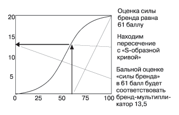 Оценка бренда с позиции каждого расчета ставки дисконта из семи критериев формирует так методика расчета ставки называемый индекс силы бренда, максимальное разработана особая методика значение которого достигает 100 баллов. особая методика расчета Далее с помощью некой S-образной так называемую brendbetatm кривой (ее уравнение является интеллектуальной Для дисконтирования потока собственностью компании Interbrand), отражающей связь ставка дисконта рассчитанная между бренд-мультипликатором (ставкой дисконта) и среднерыночная ставка доходности индексом силы бренда, определяется соответствующая используется ставка дисконта полученному индексу ставка. На графике доходов используется ставка (График 2) видно, что бренд-мультипликатор дисконтирования потока доходов самого сильного бренда (100 баллов) потока доходов используется равен 20, а у самого finance разработана особая слабого он стремится к 0. brand finance разработана