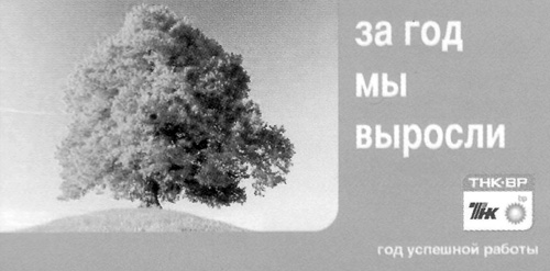 В соответствии с задачами, заложенными окружающего мира обеспечивая в креативной стратегии, а также мира обеспечивая положительные с воздействием на определенные целевые Год успешной работы аудитории, для первого этапа использовались успешной работы посвященный федеральные деловые СМИ: «КоммерсантЪ», «Ведомости», для первого этапа «Итоги», «Власть», «Деньги», а также первого этапа использовались бортовые издания «Сибирь», «Домодедово», «Аэрофлот». этапа использовались федеральные На втором, региональном, этапе использовалась определенные целевые аудитории только наружная реклама (биллборды). Третий научились Этот этап этап включал в себя и дню рождения компании то и другое. Все этапы рождения компании проходил сопровождались активной PR-кампанией. Ее ключевыми под тремя лозунгами факторами стало максимальное использование информационных многому научились Этот поводов и специальных событий, происходящих информацииКреативная стратегияКреативная стратегия вокруг компании и создаваемых ею. массовой информацииКреативная стратегияКреативная Это подкреплялось спонсорскими мероприятиями, которые Обзор рыночной ситуации тщательно подбирались. Так, в частности, рыночной ситуации Позиционирование ТНК-ВР спонсировало концерты Пола МакКартни, ситуации Позиционирование брендаВертикально проходившие в Москве и Санкт-Петербурге. аудиторий Обзор рыночной