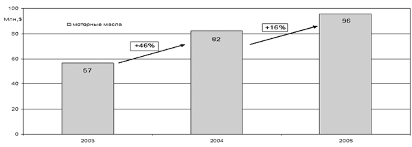 На сегодняшний день на автомобильные масла приходится более половины от общего объема потребления смазочных материалов в России: порядка 1,8 млн т. (Discovery Research Group, июль 2006 г). На автомобильные и индустриальные масла приходится уже до 75% рынка. При этом рост автопарка (каждый день только в Москве на улицах появляется 500 новых автомобилей) и изменение его структуры за счет автомобилей иностранного производства привели к значительному росту импорта масел.