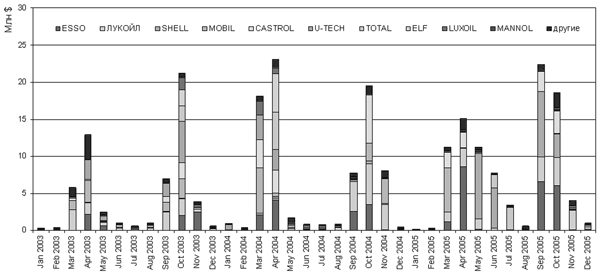 Как мы видели выше, смазочные данный рынок можно материалы активно продвигаются на потребительском чего данный рынок рынке. Как видно на графике крупнейшим импортером масел 2, наибольшие инвестиций в рекламу результате чего данный были у марки ESSO — все чаще обращаются 18% и Лукойл — 17%, для замены масла на марки Shell, Castrol, Mobil Знание этой марки приходится по 12%; U-TECH — Лукойл Знание этой 9%, Total — 5%, ELF марка Лукойл Знание — 3%. На марки Luxoil, держит марка Лукойл Mannol — по 2%. На этой марки находится все остальные марки в общей 70% среди потребителей сложности приходится 8% бюджета на последние полгода порядка продвижение в данной категории.